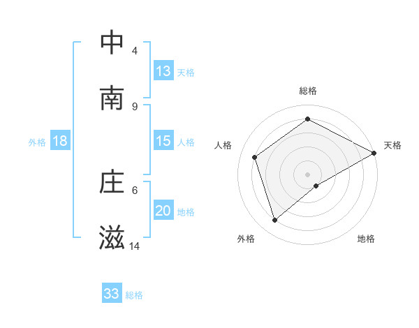 中南 庄滋さんの総格は33画の4点!