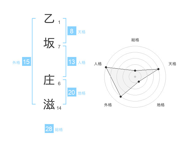 乙坂 庄滋さんの総格は28画の1点!
