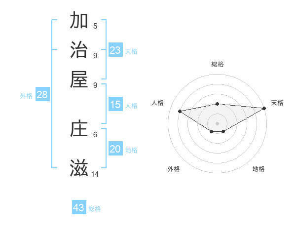 加治屋 庄滋さんを姓名の画数から五運を鑑定