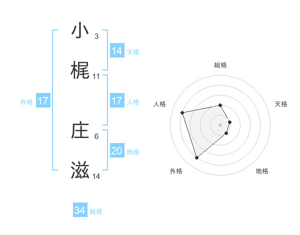 小梶 庄滋さんを姓名の画数から五運を鑑定