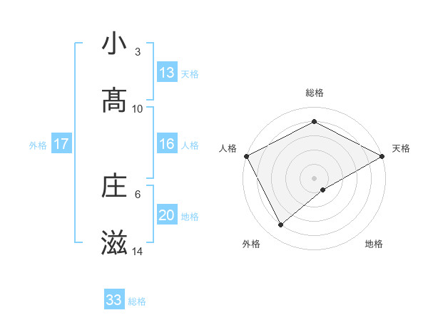 小髙 庄滋さんを姓名の画数から五運を鑑定