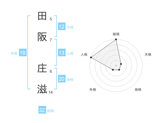 田阪 庄滋さんの総格は32画の5点!