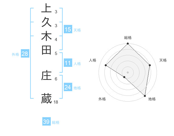 上久木田 庄蔵さんを姓名の画数から五運を鑑定