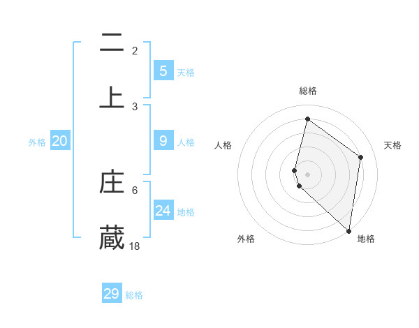 二上 庄蔵さんの総格は29画の4点!