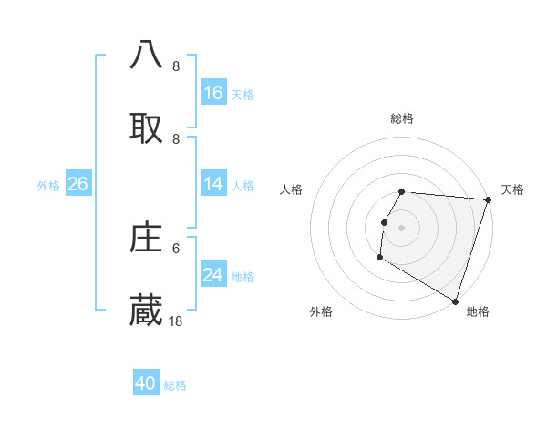 八取 庄蔵さんの総格は40画の2点!