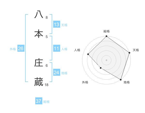 八本 庄蔵さんを姓名の画数から五運を鑑定