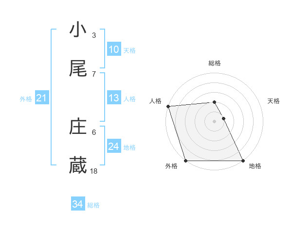 小尾 庄蔵さんの総格は34画の2点!