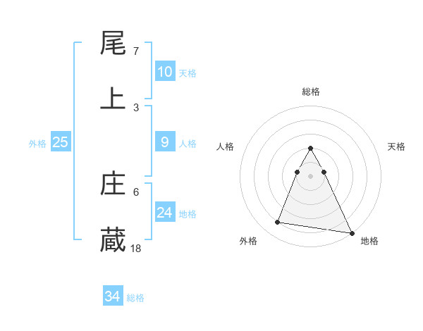尾上 庄蔵さんを姓名の画数から五運を鑑定