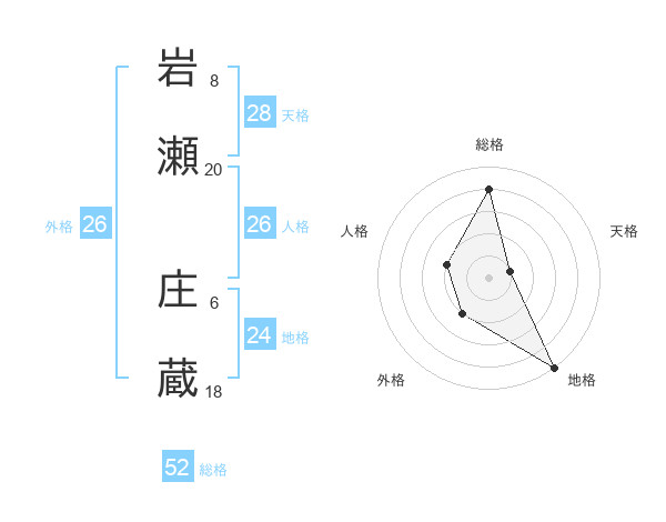 岩瀬 庄蔵さんの外格は26画の2点!