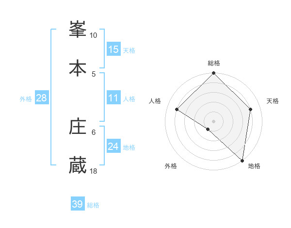 峯本 庄蔵さんを姓名の画数から五運を鑑定