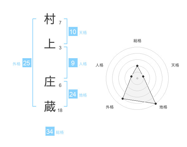 村上 庄蔵さんの総格は34画の2点!