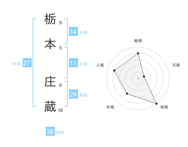 栃本 庄蔵さんの総格は38画の4点!