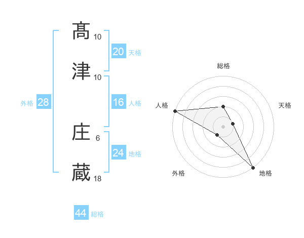 髙津 庄蔵さんの総格は44画の2点!