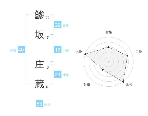 鰺坂 庄蔵さんの総格は53画の3点!