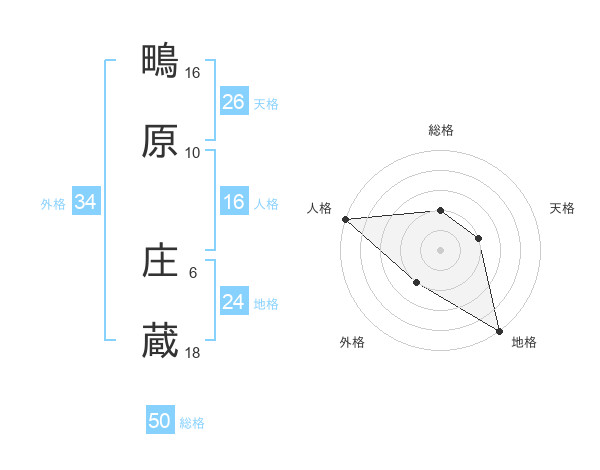 鴫原 庄蔵さんの総格は50画の2点!