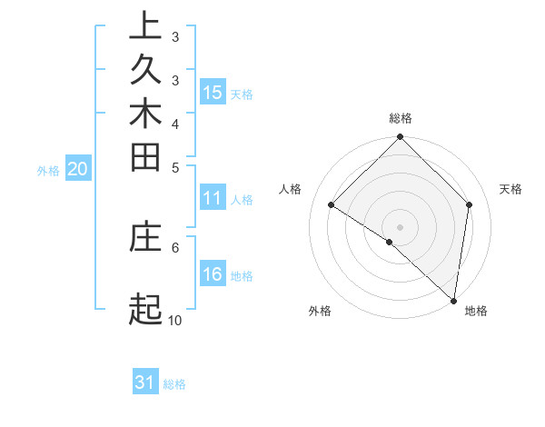 上久木田 庄起さんを姓名の画数から五運を鑑定
