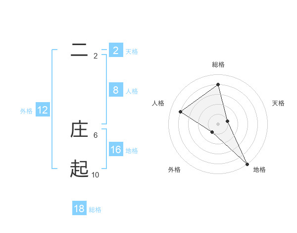 二 庄起さんの総格は18画の4点!