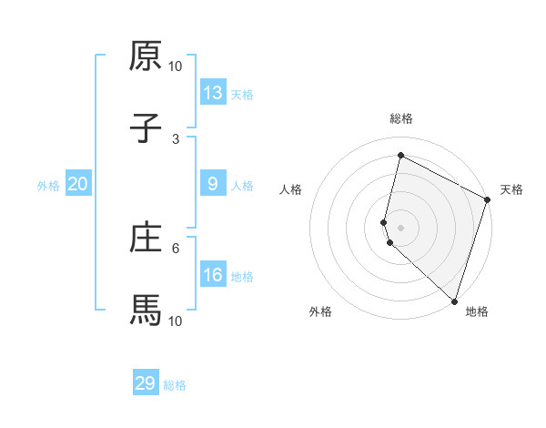 原子 庄馬さんの総格は29画の4点!