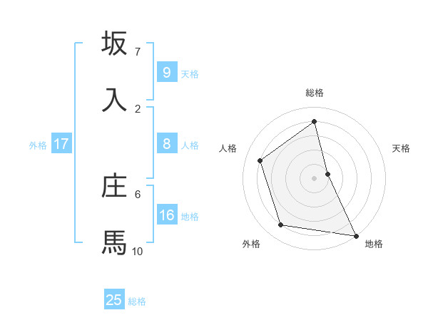 坂入 庄馬さんを姓名の画数から五運を鑑定