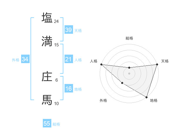 塩満 庄馬さんの総格は55画の1点!