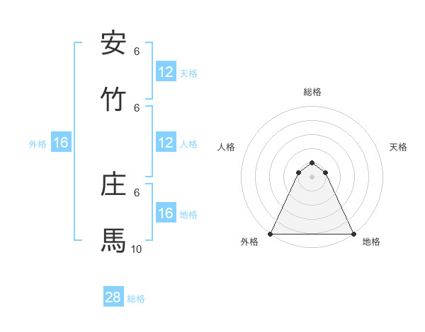 安竹 庄馬さんの総格は28画の1点!