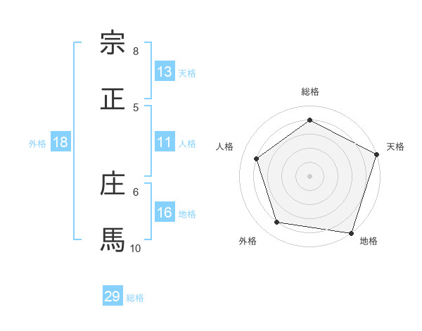 宗正 庄馬さんの総格は29画の4点!