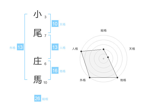 小尾 庄馬さんの外格は13画の5点!