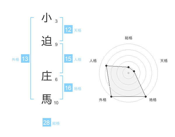 小迫 庄馬さんを姓名の画数から五運を鑑定