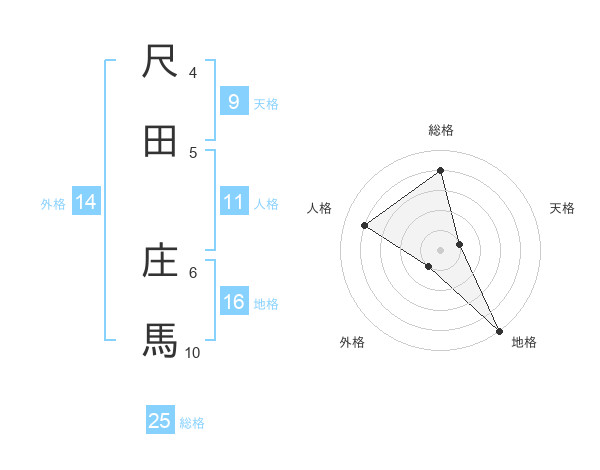 尺田 庄馬さんの総格は25画の4点!