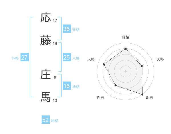 応藤 庄馬さんを姓名の画数から五運を鑑定