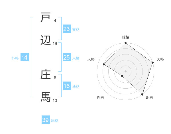 戸辺 庄馬さんの総格は39画の5点!