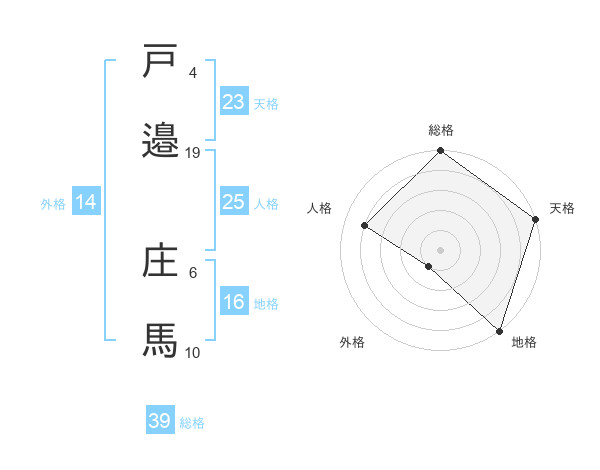 戸邉 庄馬さんの総格は39画の5点!