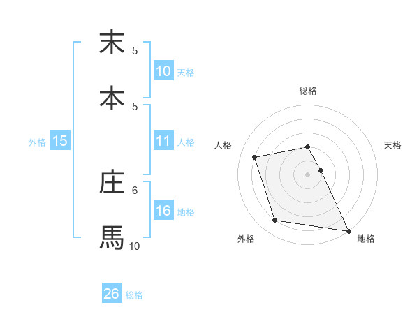 末本 庄馬さんを姓名の画数から五運を鑑定