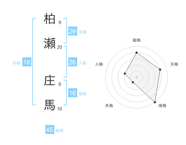 柏瀬 庄馬さんの総格は45画の4点!
