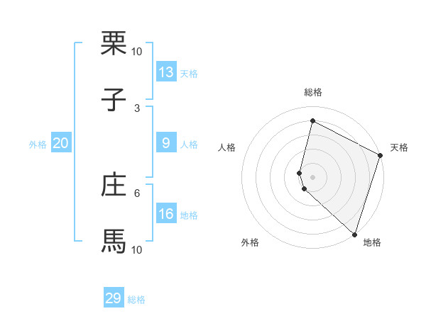 栗子 庄馬さんを姓名の画数から五運を鑑定