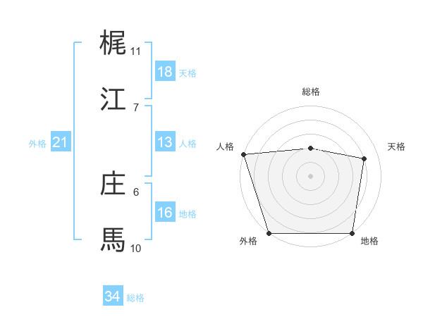 梶江 庄馬さんの総格は34画の2点!