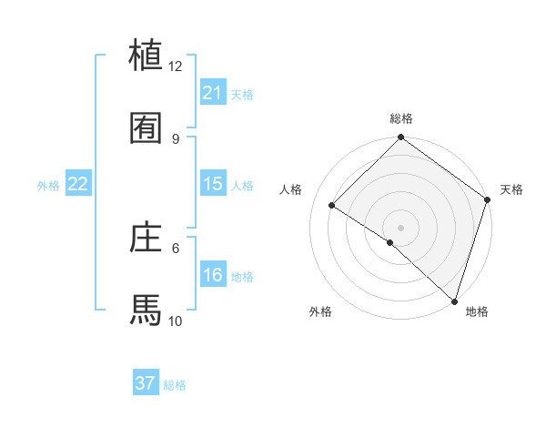植囿 庄馬さんの総格は37画の5点!