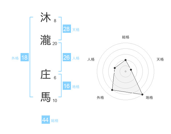 沐瀧 庄馬さんの総格は44画の2点!