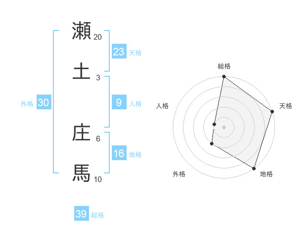 瀬土 庄馬さんの総格は39画の5点!