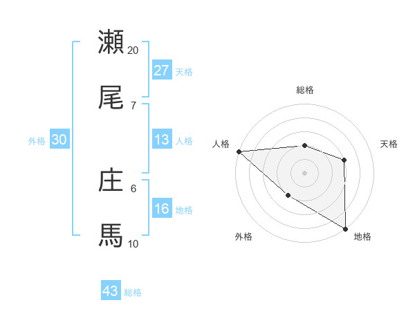 瀬尾 庄馬さんを姓名の画数から五運を鑑定