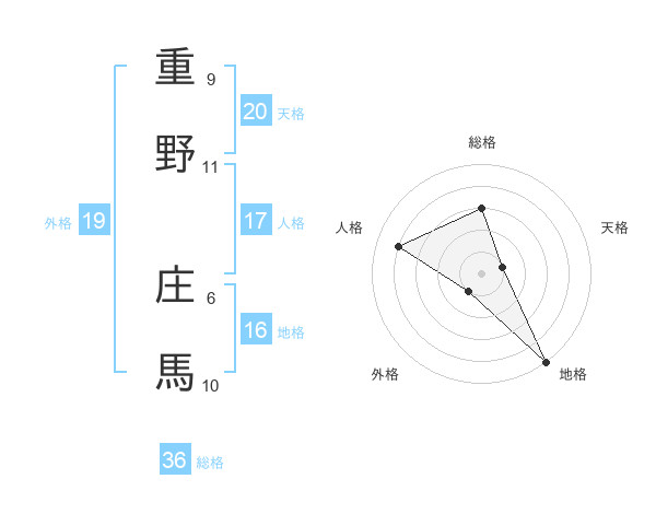重野 庄馬さんの外格は19画の1点!