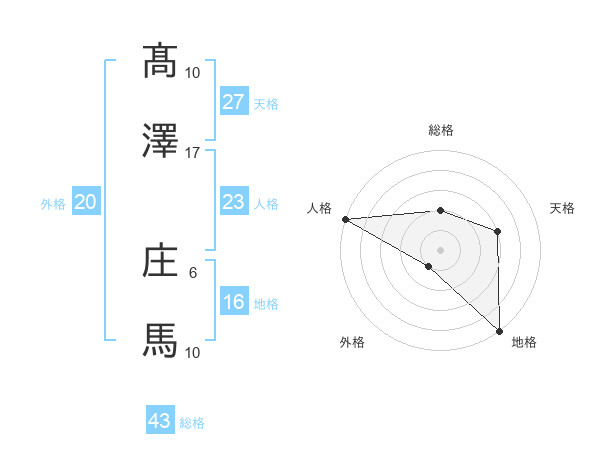 髙澤 庄馬さんの総格は43画の2点!