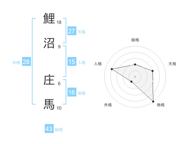 鯉沼 庄馬さんの総格は43画の2点!