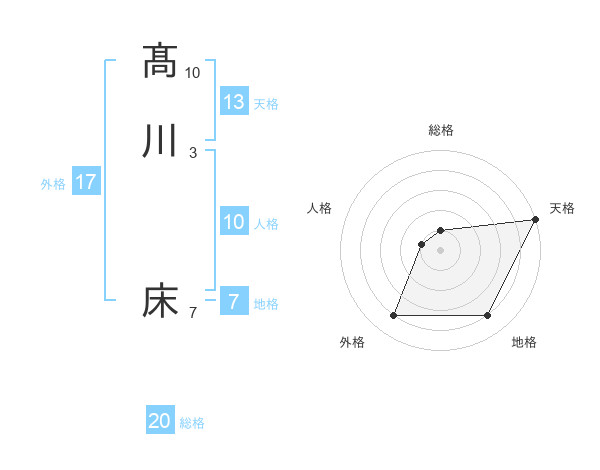 髙川 床さんの天格は13画の5点!