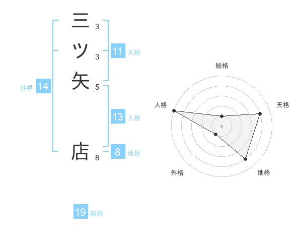 三ツ矢 店さんを姓名の画数から五運を鑑定