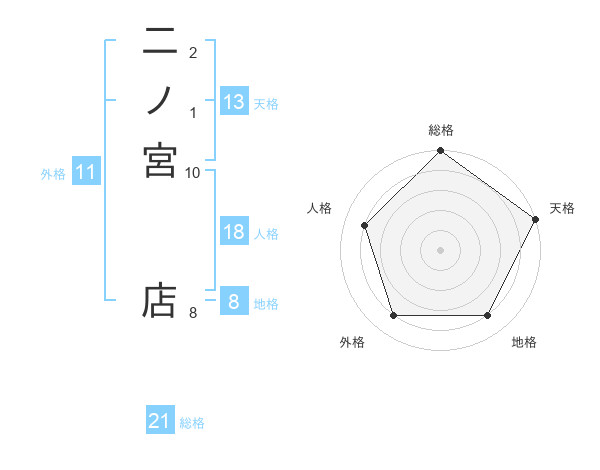 二ノ宮 店さんを姓名の画数から五運を鑑定