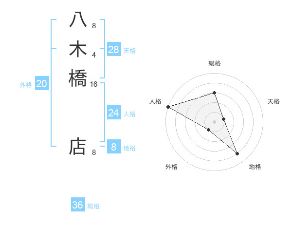 八木橋 店さんの地格は8画の4点!