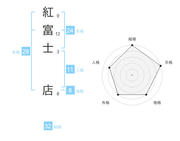 紅富士 店さんの総格は32画の5点!