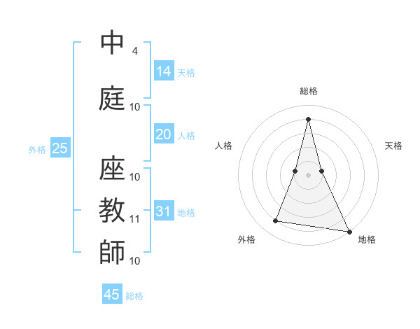 中庭 座教師さんを姓名の画数から五運を鑑定