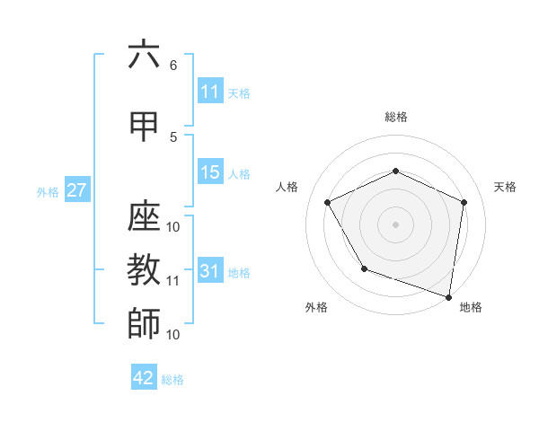 六甲 座教師さんの総格は42画の3点!